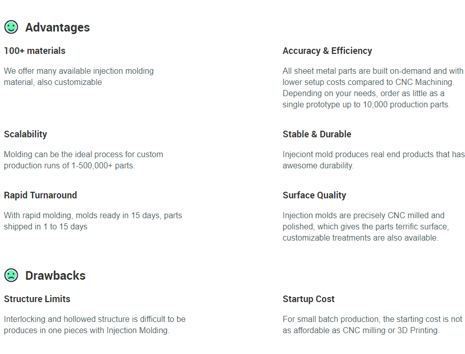 Das Spritzgießen ist eines der am häufigsten verwendeten Fertigungsverfahren zur Herstellung von Kunststoffteilen. Dank seiner hohen Präzision, Wiederholbarkeit und Kosteneffizienz in großem Maßstab wird das Spritzgießen zur Herstellung einer Vielzahl von Produkten und Teilen verwendet, vom kleinsten medizinischen Einsatz bis hin zu großen Teilen für die Automobil-, Luft- und Raumfahrtindustrie und die Verteidigung. Für das Spritzgießverfahren sind eine Spritzgießmaschine, Kunststoffrohmaterial und eine bearbeitete Form erforderlich. Der Rohkunststoff wird zunächst in der Spritzgießmaschine geschmolzen und dann in die Form - meist aus Stahl oder Aluminium - gespritzt, wo er abkühlt und zu dem endgültigen Kunststoffteil erstarrt. Die wichtigsten Schritte im Spritzgießprozess sind das Schließen, Einspritzen, Kühlen und Auswerfen.